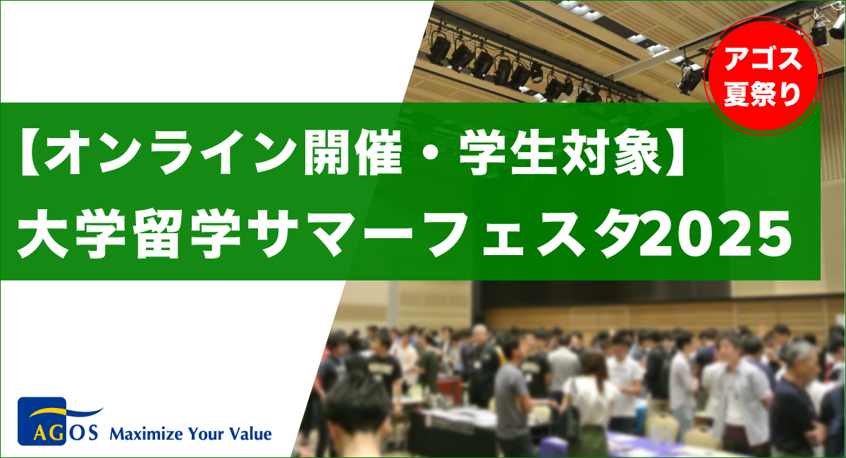 海外トップ大学・大学院留学準備指導校を運営する株式会社アゴス・ジャパン(取締役会長:横山 匡、本社:東京都渋谷区)は、2025年8月11日(月・祝)に、欧米総合大学・リベラルアーツカレッジトップ校の在校生・卒業生が参加するオンラインイベント「大学留学サマーフェスタ2025」を開催いたします。