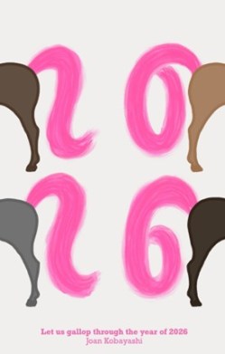Wherever you are in the world, I hope this time of year is bringing you joy, peace, time to reflect, along with some nostalgia, perhaps. I have attached a holiday card, Nengajō, on the theme of the year of the horse, along with a reflective slideshow that you can browse through for those not in the mood for reading (this one is a nice fat one).